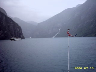 In Hellesylt met de boot door de Geirangerfjord naar Geiranger varen en terug.